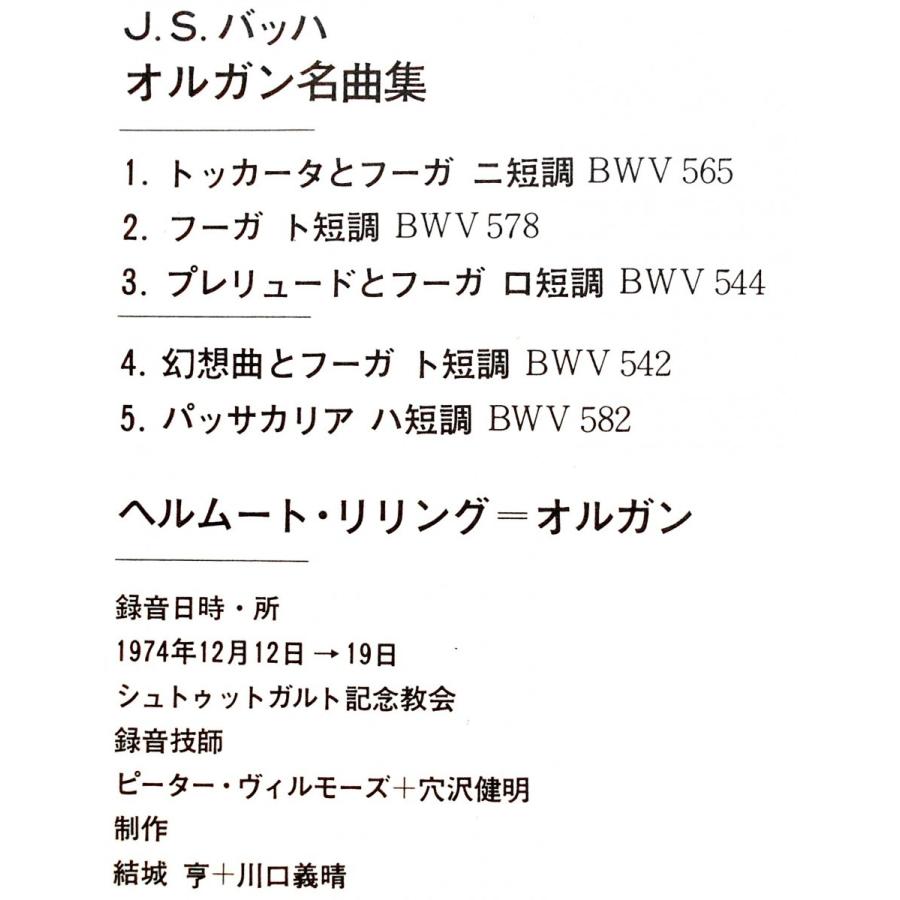 中古lpレコード バッハ オルガン名曲集 トッカータとフーガ ニ短調 他 ヘルムート リリング オルガン Johann Sebastian Bach Toccata And Fugue Ox7027nd Lpレコード専門 美寿濃レコード 通販 Yahoo ショッピング