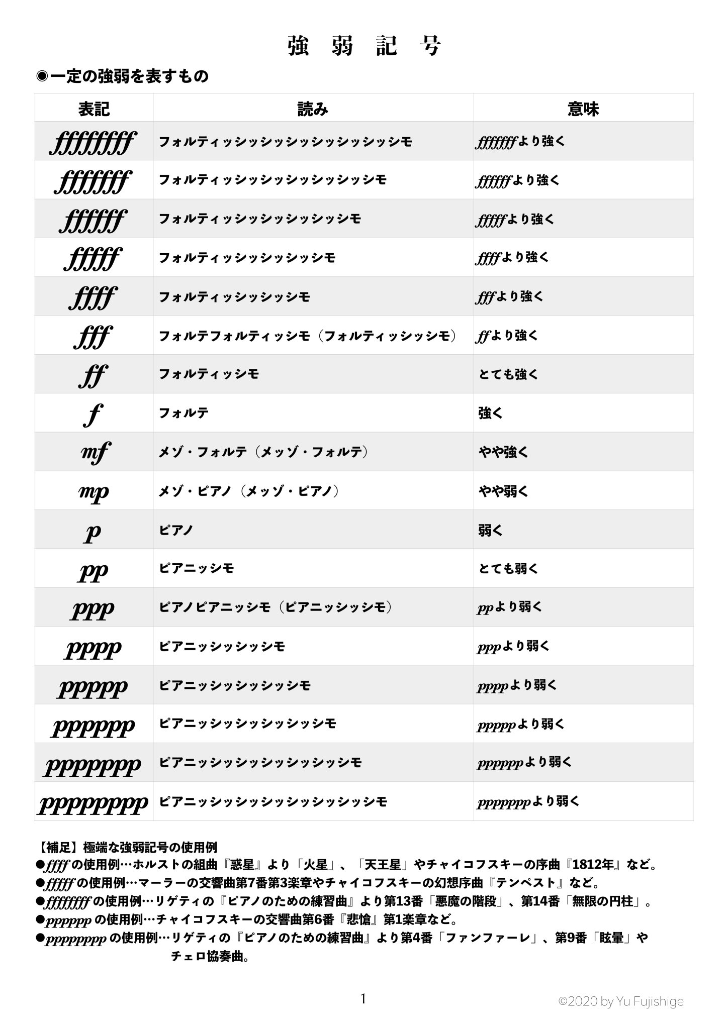 藤重 侑宇 V Twitter 強弱記号の一覧表を作りました よろしければご活用ください