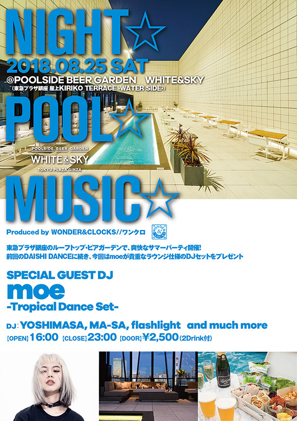 Moe出演 東急プラザ銀座屋上ルーフトップテラスkiriko Terraceで開催するtropical Party Night Pool Party