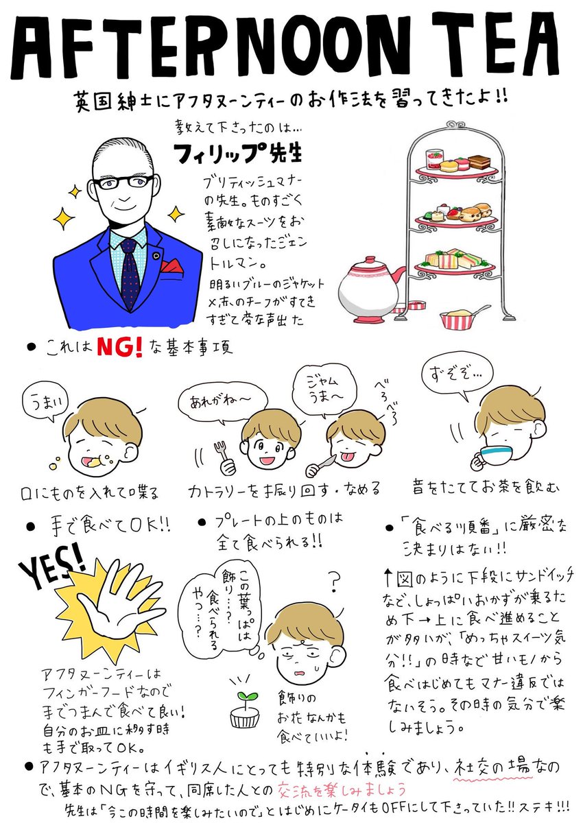 英国紳士に習ったテーブルマナー のイラストがわかりやすいし素敵 これで私もジェームズ ボンド スコーンは誰でもボロボロになる Togetter
