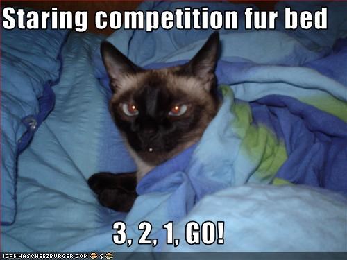 Staring Competition Fur Bed 3 2 1 Go Cheezburger Funny Memes Funny Pictures