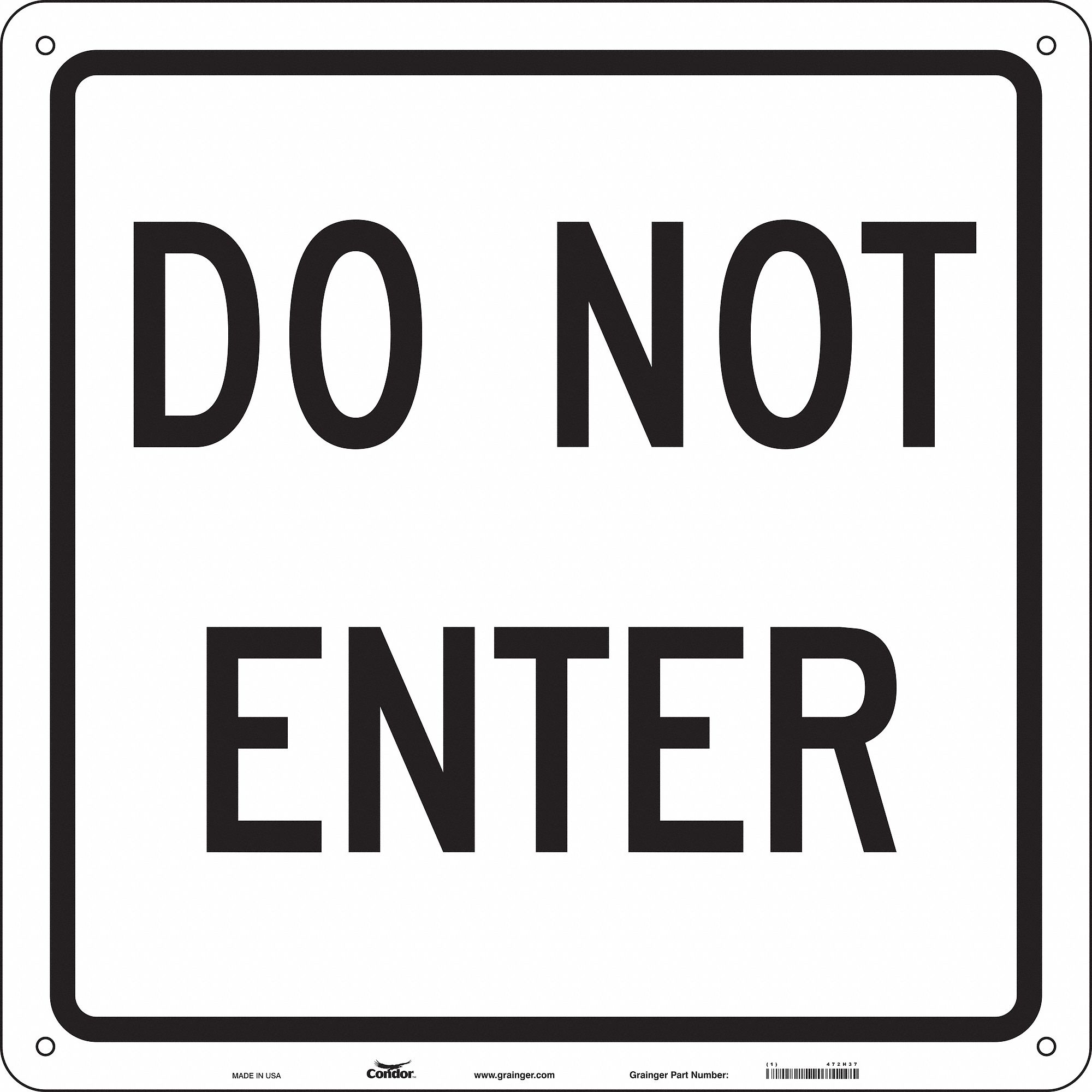 Condor Safety Sign Do Not Enter Header No Header Square 24 Height 24 Width Aluminum 472h37 472h37 Grainger